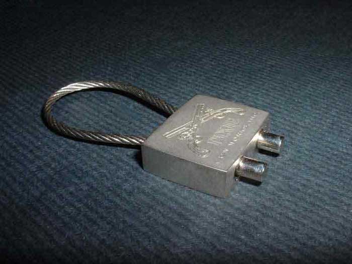 Logotipo y texto grabado en llavero.
